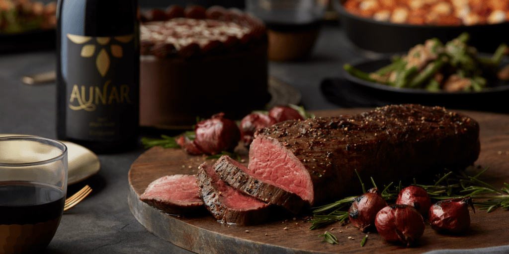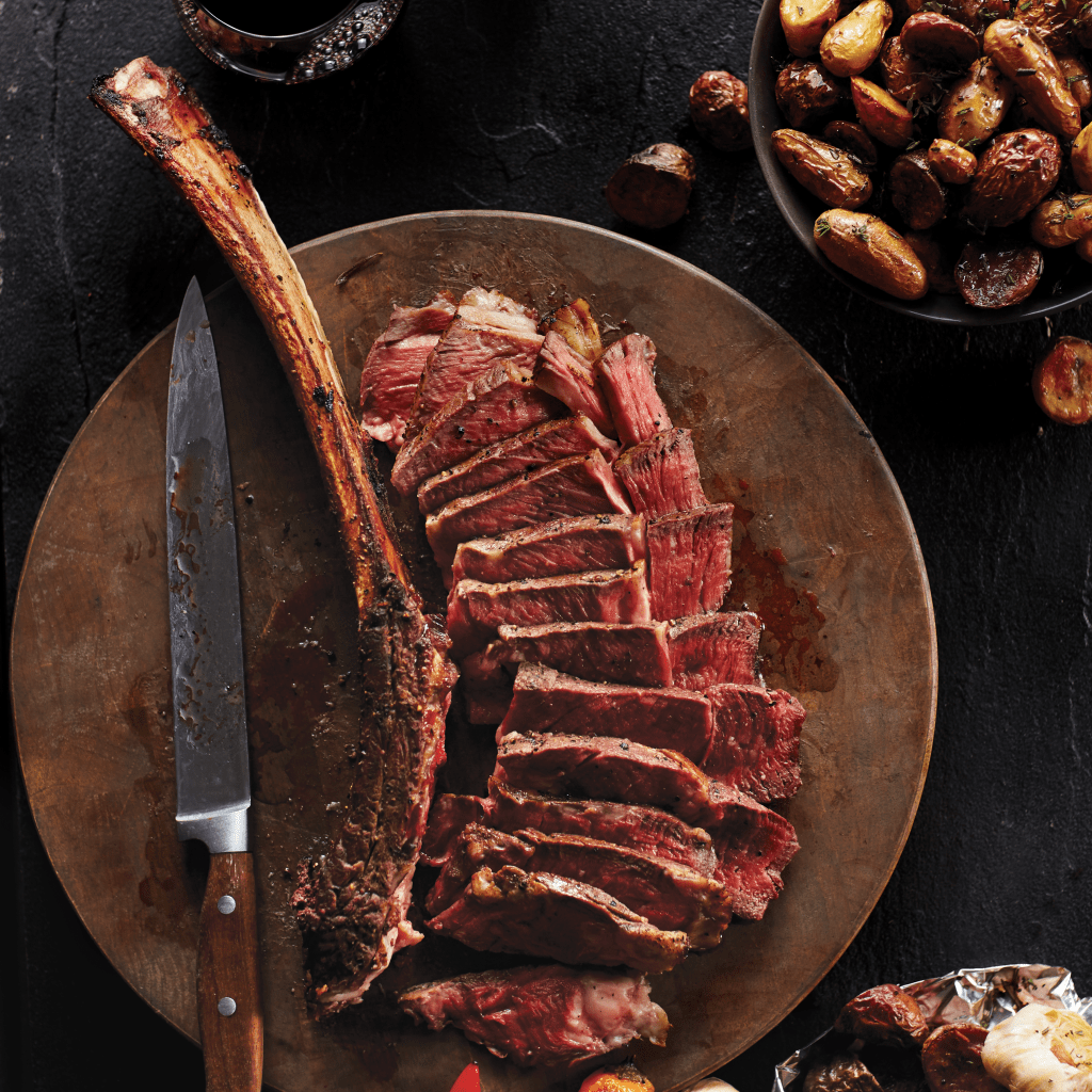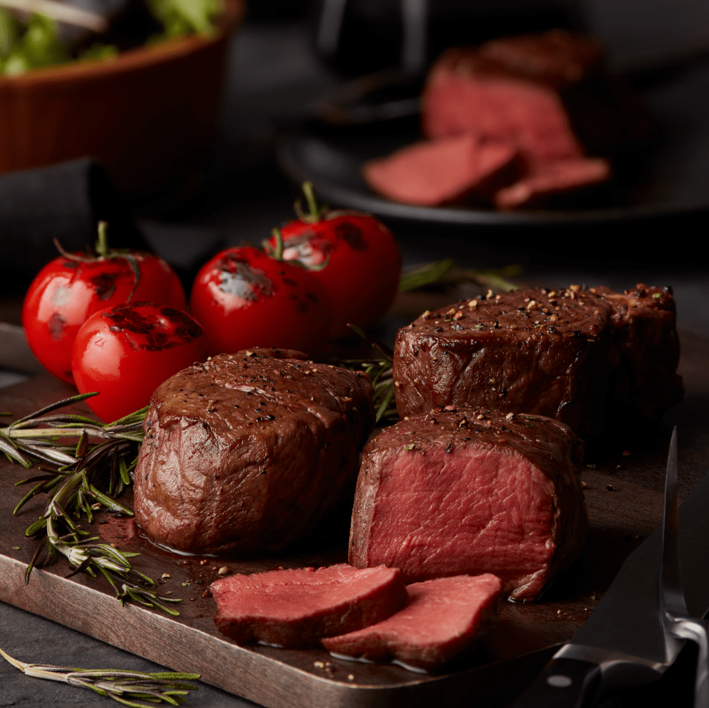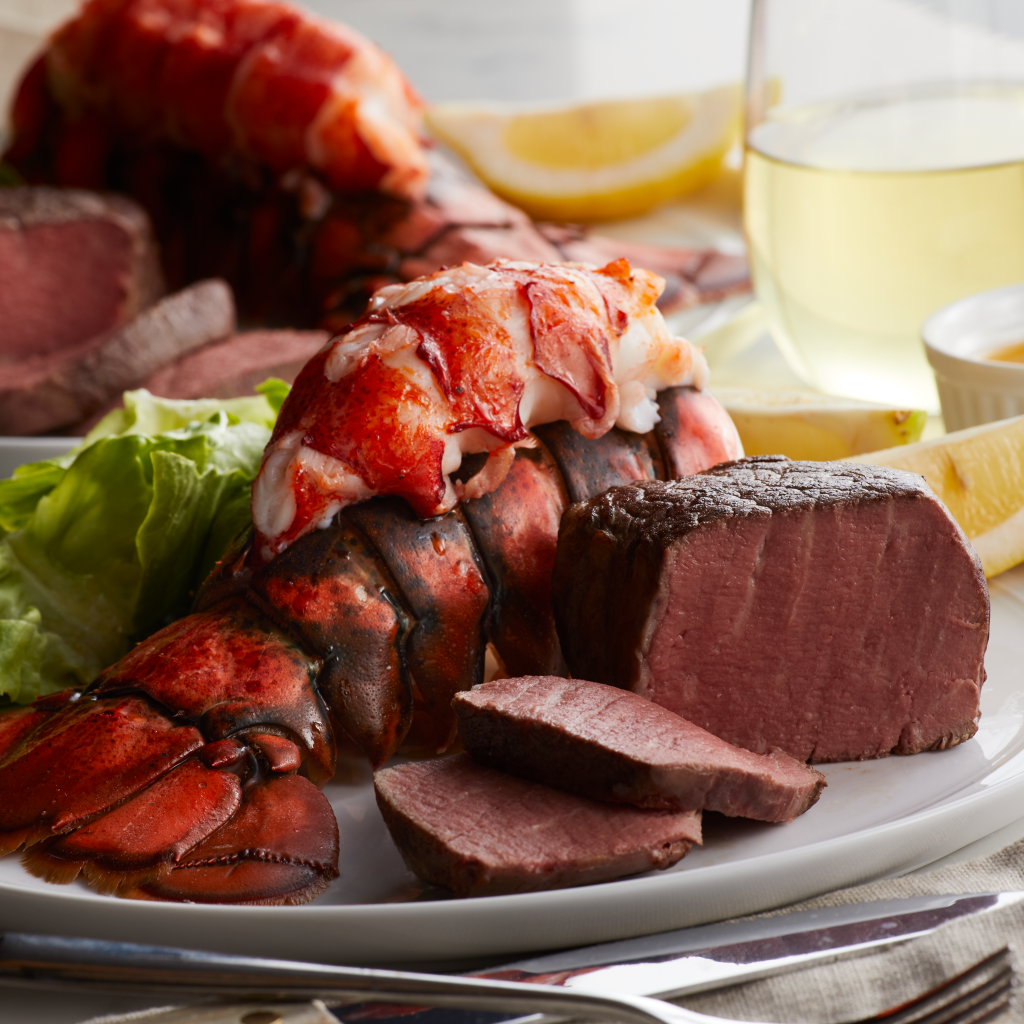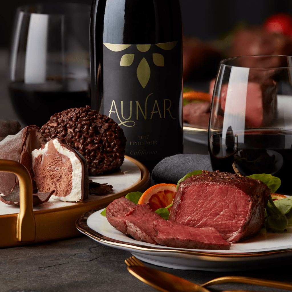 The elevated assortment mirrored a fine steakhouse experience with prime cuts, seafood, and impressive desserts presented with rich, appetizing photography shot at West Town Studio in Chicago.