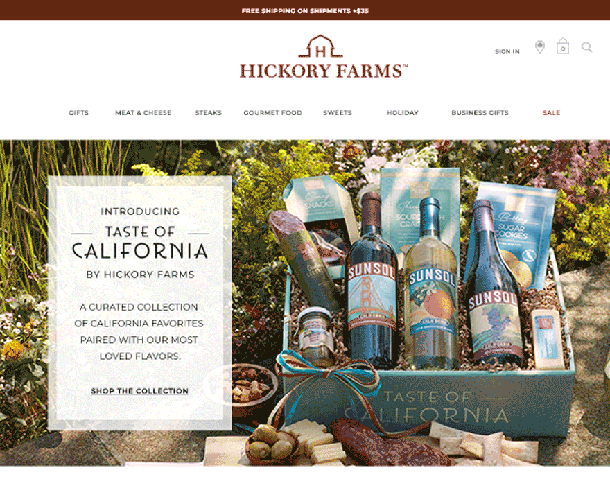Taste of California landing page on HickoryFarms.com